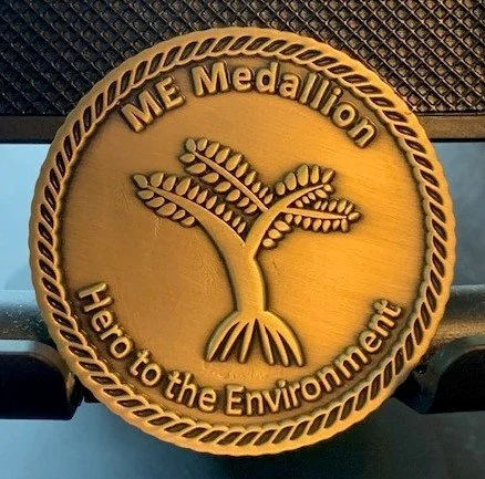Once you save your 30 pieces of trash from the environment, you go back to the website to enter the pieces you’ve saved. Then you send the medallion on to a friend or relative to do the same. They will also sign themselves in the ME Medallion website, enter their location and 30 pieces of trash saved, and forward the medallion on to another. Your medallion will promote environmental stewardship, and its impact will grow every time its passed on to another.